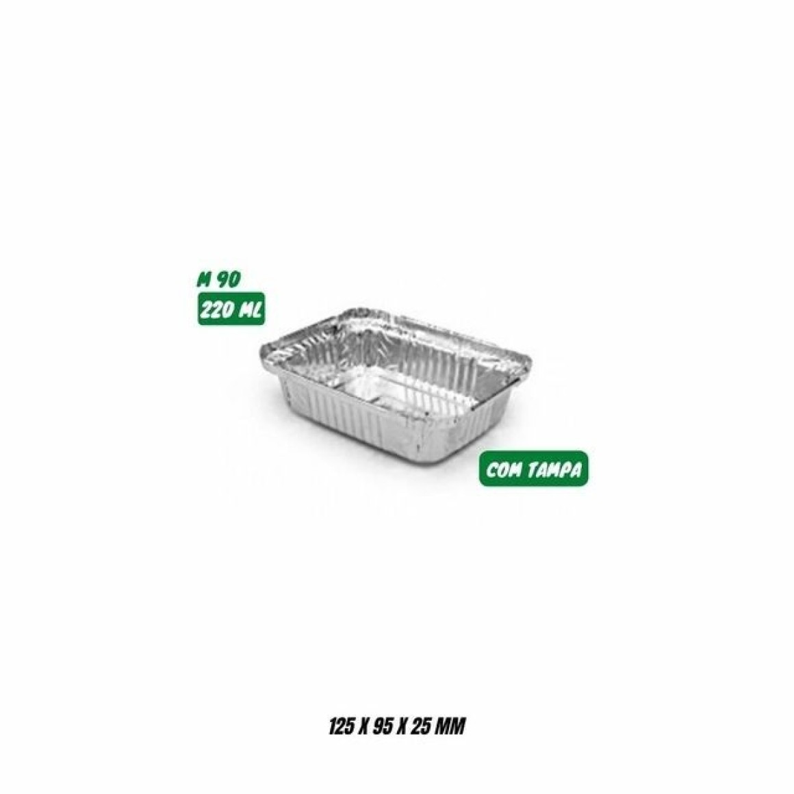 DESCRIÇÃO COMPLETA DO PRODUTO: A CAIXA BANDEJA RETANGULAR M90 COM CAPACIDADE DE 220 ML É UMA EMBALAGEM VERSÁTIL E PRÁTICA, IDEAL PARA ACONDICIONAR ALIMENTOS DIVERSOS, COMO BOLINHOS, DOCES, PORÇÕES INDIVIDUAIS DE REFEIÇÕES E OUTROS ITENS CULINÁRIOS. FABRICADA EM ALUMÍNIO DE ALTA QUALIDADE, ESTA BANDEJA ASSEGURA A CONSERVAÇÃO DOS ALIMENTOS, MANTENDO SUA TEMPERATURA E FRESCOR POR MAIS TEMPO.