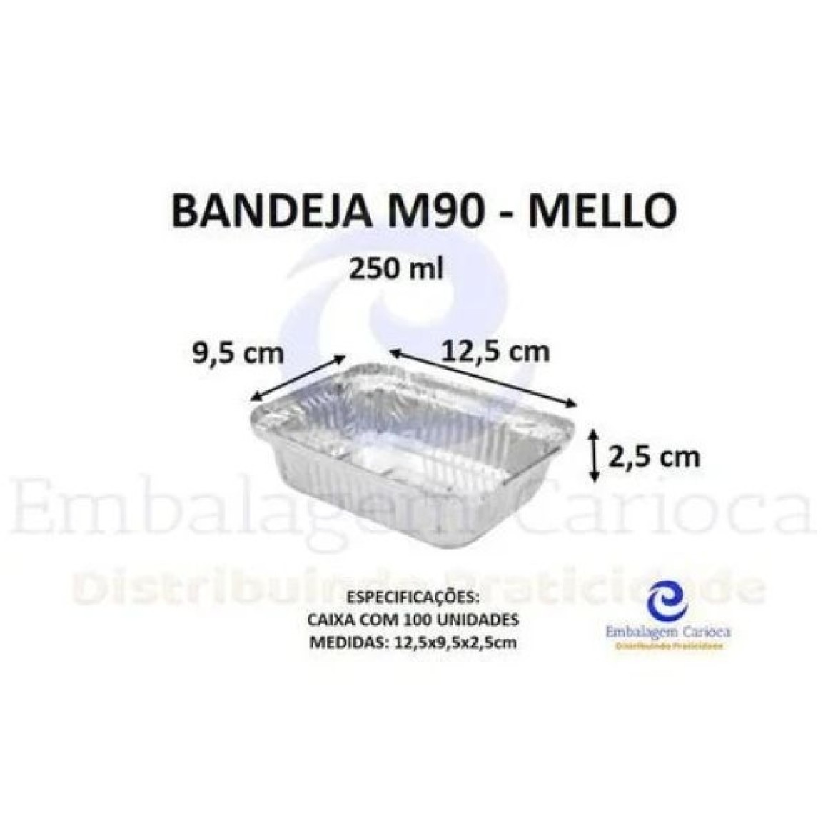 CAIXA BANDEJA RETANGULAR DE ALUMÍNIO M90 COM CAPACIDADE DE 220 ML COM 100 UNIDADES