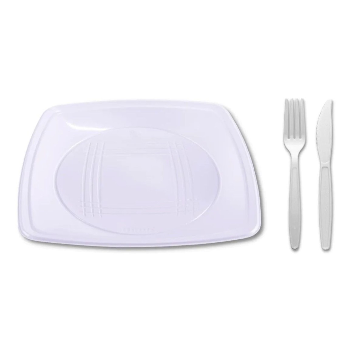 KIT CONTENDO: PRATO, GARFO E FACA DESCARTÁVEIS