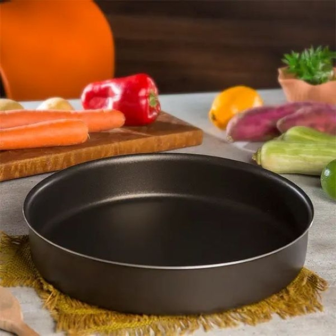 A FORMA ASSADEIRA REDONDA ANTIADERENTE – 30 CM – UNIDADE É IDEAL PARA O PREPARO DE BOLOS, TORTAS, PIZZAS E DIVERSAS RECEITAS ASSADAS QUE EXIJAM COZIMENTO UNIFORME E FACILIDADE NA DESENFORMA. COM REVESTIMENTO ANTIADERENTE, EVITA QUE OS ALIMENTOS GRUDEM, PROPORCIONANDO UM ACABAMENTO PERFEITO E UMA LIMPEZA MUITO MAIS RÁPIDA. INDICADA TANTO PARA USO DOMÉSTICO QUANTO PROFISSIONAL, ESSA ASSADEIRA REÚNE PRATICIDADE, RESISTÊNCIA E ALTA PERFORMANCE NA COZINHA.