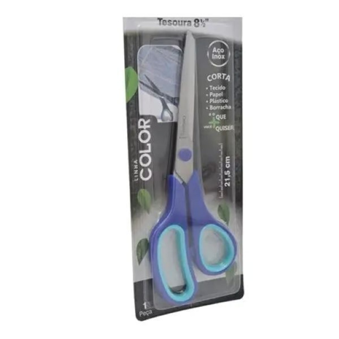 TESOURA MULTIUSO AZUL NÚMERO 8 AÇO INOX 21,5 CM