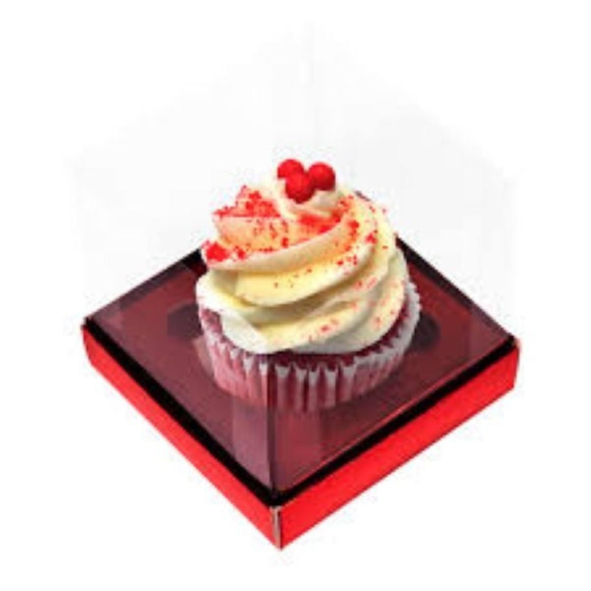 CAIXA PARA 1 CUPCAKE TAMPA TRANSPARENTE COR VERMELHA - UNIDADE