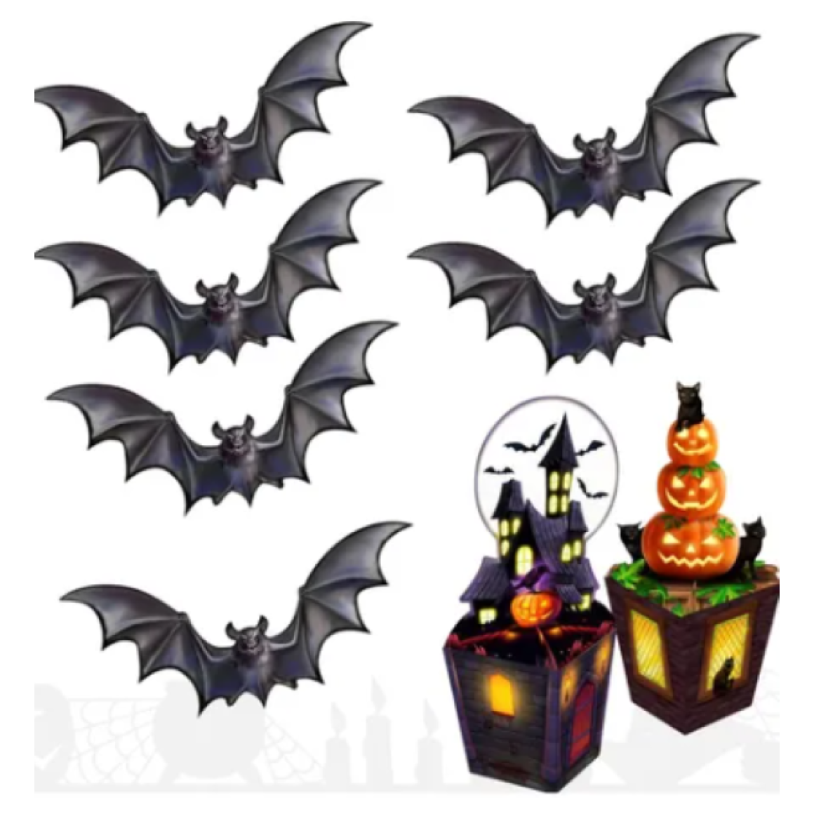 COMBINE COM TEIAS ARTIFICIAIS, ABÓBORAS E OUTROS ELEMENTOS HALLOWEEN PARA UM EFEITO MAIS REALISTA.