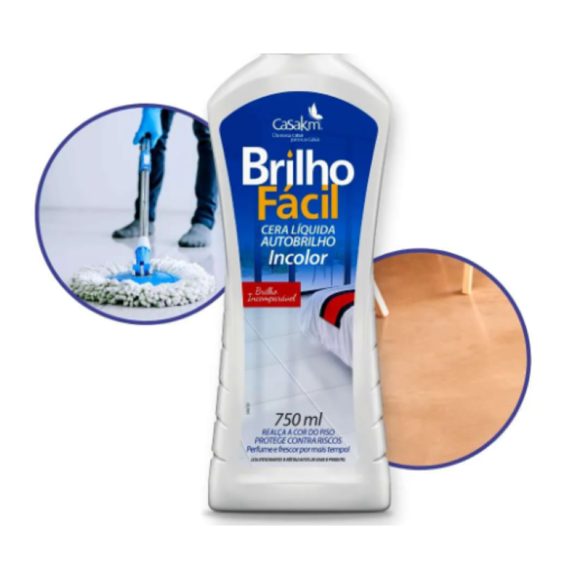 A CERA BRILHO FÁCIL É PERFEITA PARA PROPORCIONAR UM BRILHO IMEDIATO E DURADOURO EM PISOS E SUPERFÍCIES. SUA FÓRMULA ESPECIAL RESTAURA O ASPECTO NATURAL, DEIXANDO O AMBIENTE LIMPO E BEM-CUIDADO. FÁCIL DE APLICAR, OFERECE UMA CAMADA PROTETORA QUE AJUDA A PRESERVAR A DURABILIDADE DOS PISOS, EVITANDO O DESGASTE DIÁRIO. INDICADA PARA USO DOMÉSTICO OU PROFISSIONAL, GARANTE RESULTADOS SURPREENDENTES COM PRATICIDADE