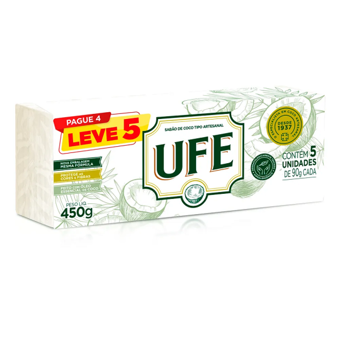 SABÃO DE COCO UFE COM 5 UNIDADES DE 90 GRAMAS (450 GRAMAS TOTAL)