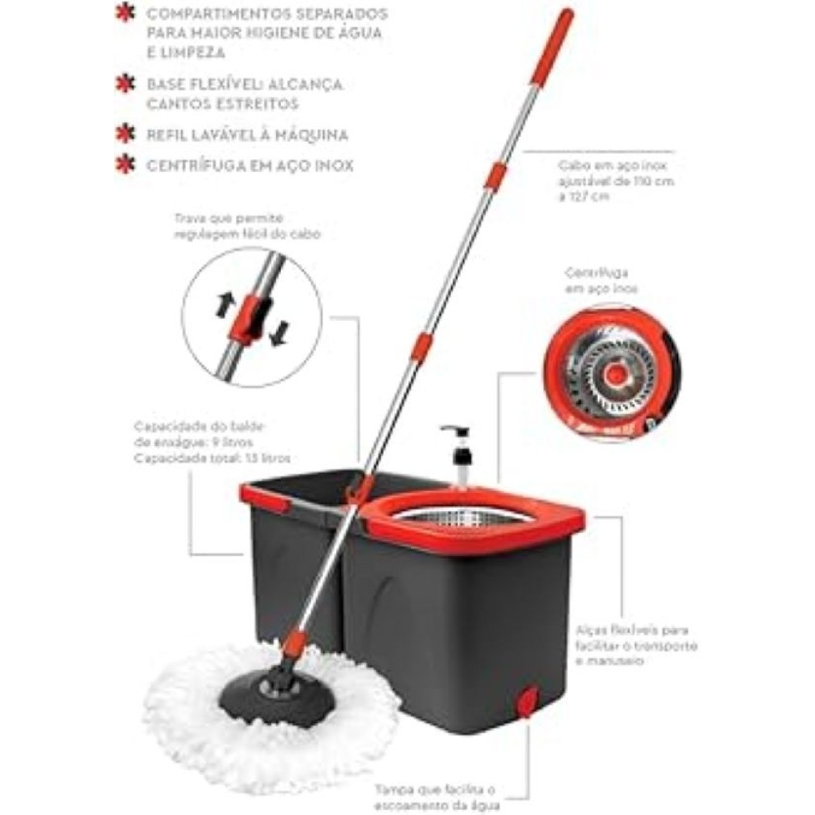 - EFICIÊNCIA NA LIMPEZA: GARANTE LIMPEZA RÁPIDA E EFICIENTE, SEM O NECESSÁRIO ESFORÇO PARA TORCER O MOP.