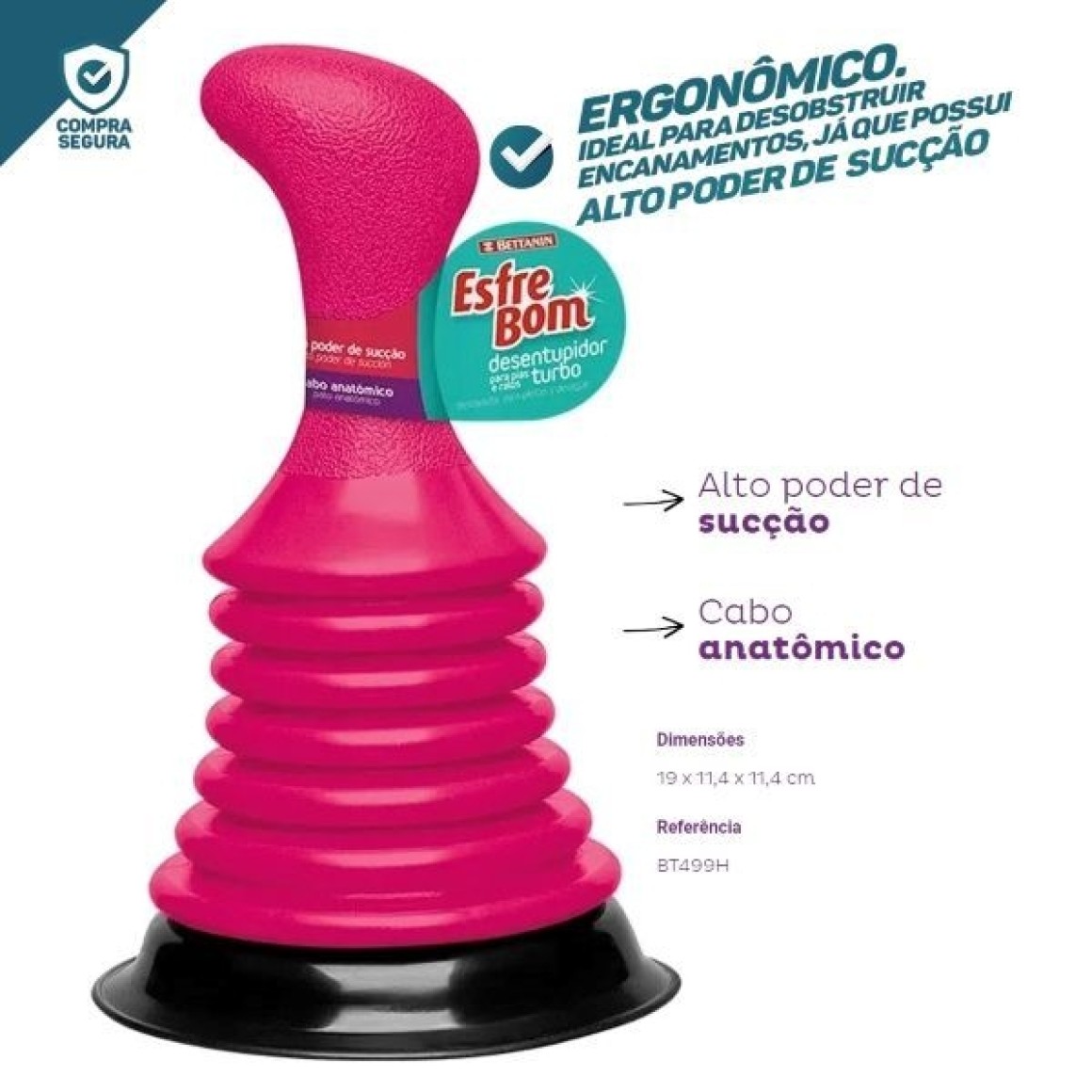 O DESENTUPIDOR TURBO PLÁSTICO UNIDADE FOI DESENVOLVIDO PARA OFERECER MÁXIMA PRESSÃO E EFICIÊNCIA NA DESOBSTRUÇÃO DE CANOS, PIAS, RALOS E VASOS SANITÁRIOS. FABRICADO EM PLÁSTICO RESISTENTE, POSSUI DESIGN ERGONÔMICO E BASE FLEXÍVEL, QUE SE ADAPTA A DIFERENTES SUPERFÍCIES. SEU FORMATO TURBO PERMITE MAIOR SUCÇÃO E PRESSÃO, TORNANDO O PROCESSO DE DESENTUPIMENTO MAIS RÁPIDO E EFETIVO, SEM NECESSIDADE DE PRODUTOS QUÍMICOS.