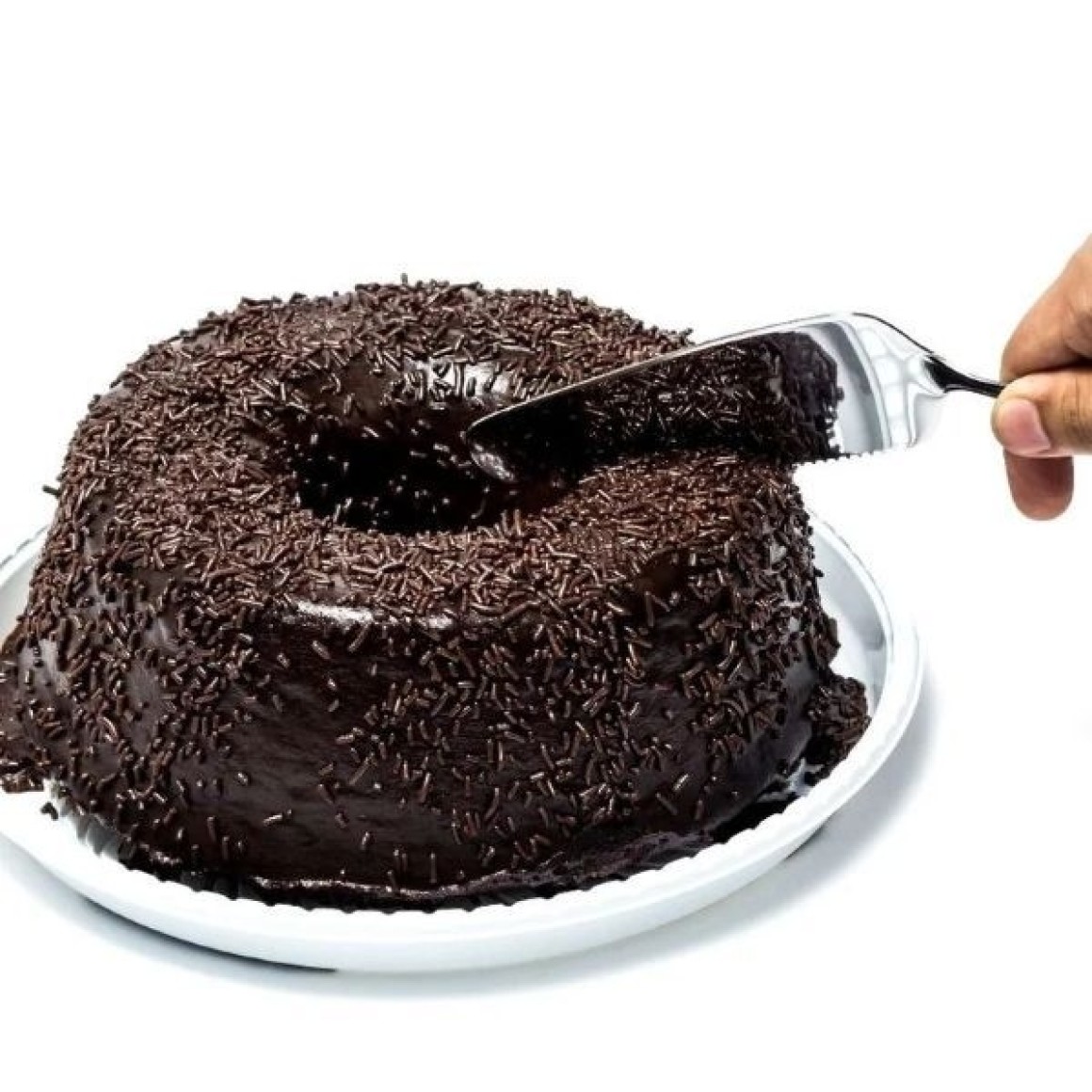 UTILIZE A ESPÁTULA PARA CORTAR E SERVIR FATIAS DE BOLO, TORTAS OU OUTRAS SOBREMESAS.