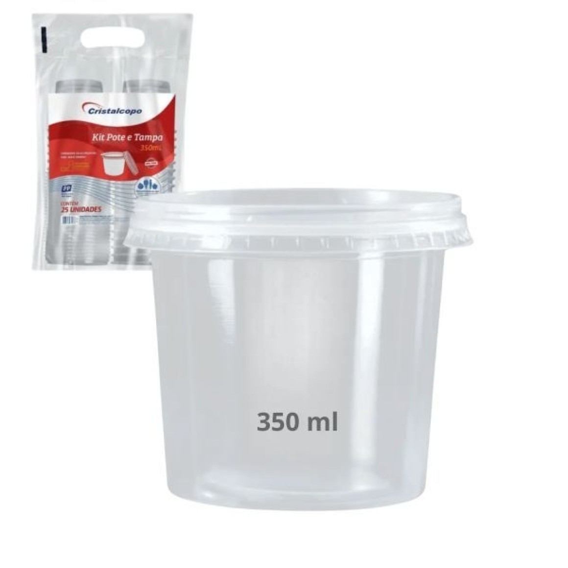 O POTE REDONDO 350 ML – KIT COM POTE E TAMPA – C/25 UNIDADES – CRISTALCOPO É A OPÇÃO IDEAL PARA EMBALAR, ARMAZENAR E TRANSPORTAR ALIMENTOS DE FORMA SEGURA, HIGIÊNICA E ORGANIZADA. COM FORMATO REDONDO E FABRICAÇÃO EM PLÁSTICO TRANSPARENTE, OFERECE VISUALIZAÇÃO CLARA DO CONTEÚDO, ENQUANTO SUA TAMPA POSSUI ENCAIXE FIRME QUE EVITA VAZAMENTOS. COMPATÍVEL COM FREEZER E MICRO-ONDAS, É PERFEITO PARA USO EM MARMITAS, DELIVERY, LANCHES, DOCES, SALADAS E MOLHOS.