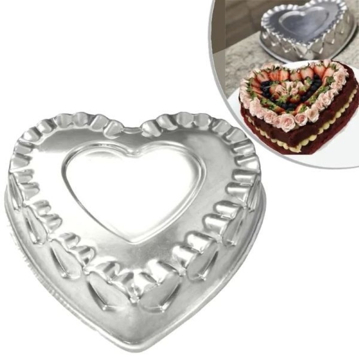 FORMA DE ALUMÍNIO CORAÇÃO DECORADA 33X7 CM, PERFEITA PARA BOLOS E TORTAS. QUALIDADE, BELEZA E FUNCIONALIDADE PARA SUAS RECEITAS.