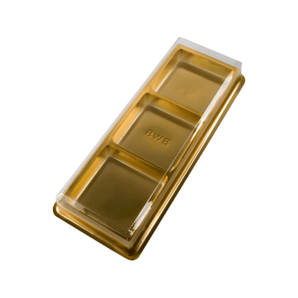 A CAIXA PARA TRIO DE PÃO DE MEL DOURADO É A EMBALAGEM PERFEITA PARA VALORIZAR E APRESENTAR SEUS DELICIOSOS PÃES DE MEL COM ELEGÂNCIA E SOFISTICAÇÃO. DESENVOLVIDA ESPECIALMENTE PARA ACOMPODAR TRÊS UNIDADES DE PÃO DE MEL, SEU ACABAMENTO NA COR DOURADA CONFERE UM TOQUE LUXUOSO, IDEAL PARA PRESENTES, LEMBRANCINHAS, EVENTOS ESPECIAIS E COMERCIALIZAÇÃO EM CONFEITARIAS E EMPÓRIOS GOURMET. FABRICADA COM PAPEL CARTÃO DE ALTA QUALIDADE, ESTA CAIXA GARANTE A PROTEÇÃO E A INTEGRIDADE DOS SEUS PRODUTOS DURANTE O TRANSPORTE E ARMAZENAMENTO, AO MESMO TEMPO EM QUE ATRAI O OLHAR DO CONSUMIDOR PELA SUA BELEZA E ACABAMENTO IMPECÁVEL. CADA UNIDADE É VENDIDA SEPARADAMENTE, PERMITINDO A FLEXIBILIDADE DE COMPRA CONFORME SUA NECESSIDADE.